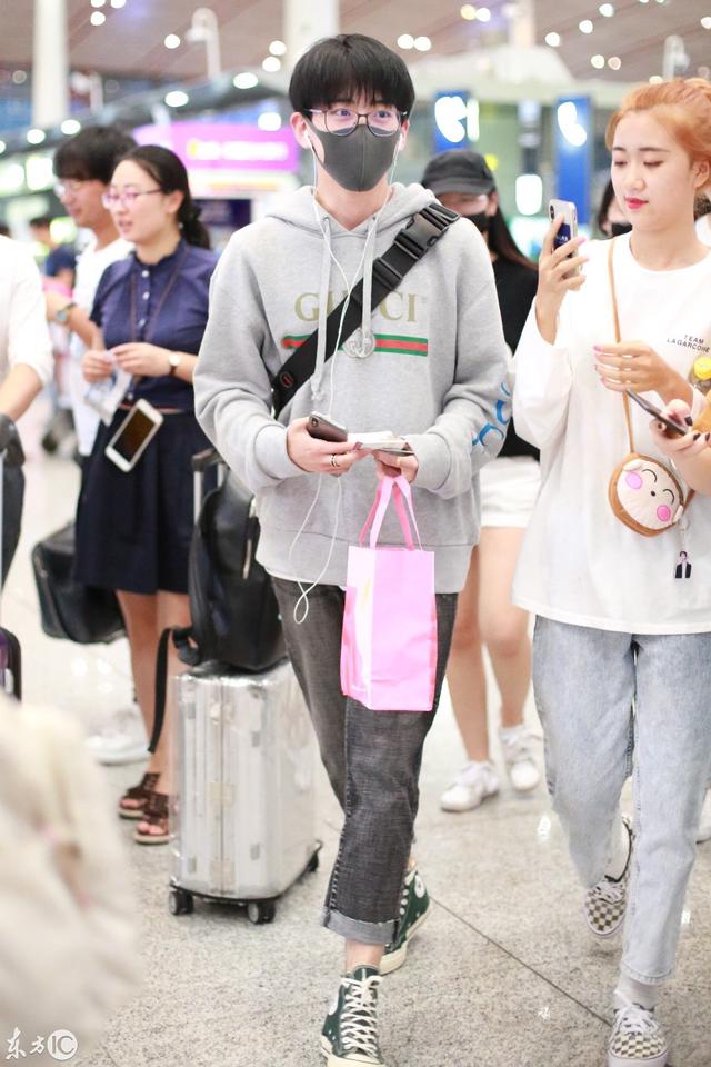 8月23日,费现身北京机场,受到等候在机场的粉丝们的热烈欢迎。粉丝们还送了他一个装在粉色纸袋里的礼物。(图片来自东方IC)