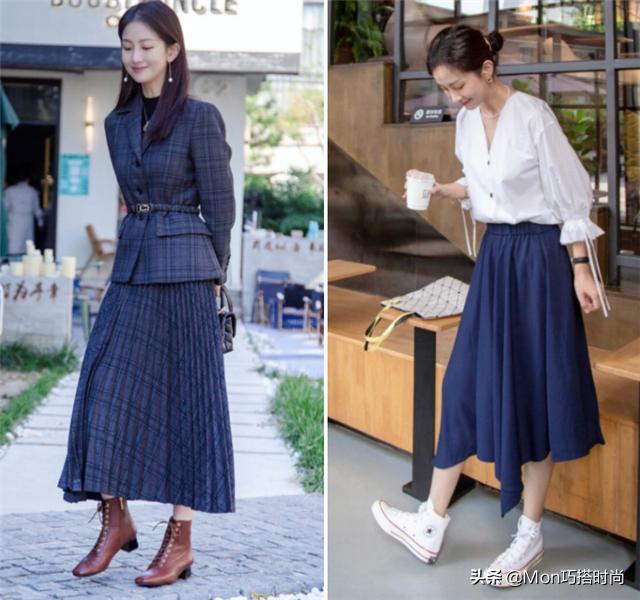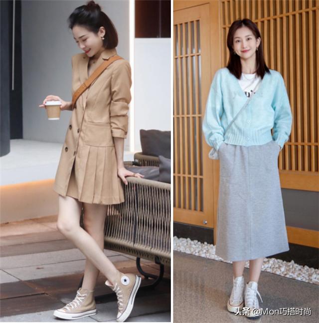 而且有很多穿衣风格可以让我们选择。如果你想展现自己的文艺风格,可以向博主学习用这种百褶连衣裙搭配匡威靴子。如果想表现的淑女一些,可以用中长裙搭配匡威靴。