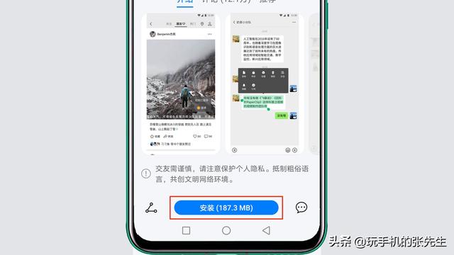 安装手机微信,需要通过系统自带的“应用市场”App进行操作。