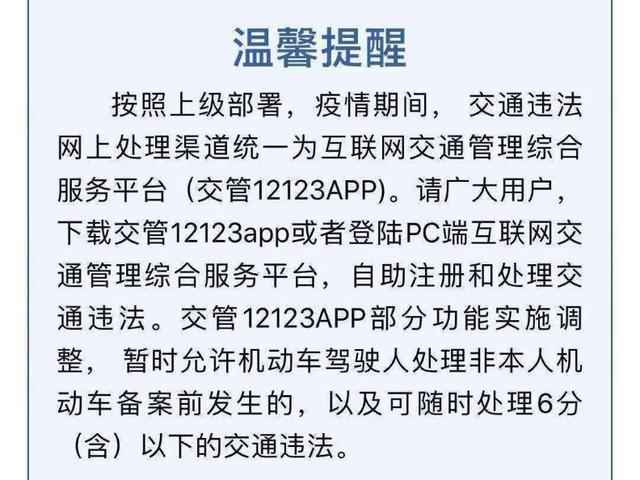 1月31日,有报道称,为避开人流,降低病毒传播风险,司机通过“交管12123”APP处理违章,6分以下违章不扣分,只罚款。随后,这条信息在网上被辟谣,但很多网友表示并没有扣分处理违规。那么,12123是不是用来处理违章的,只扣罚款不扣?今天(2020年2月2日)在车被拥有后进行了详细调查。