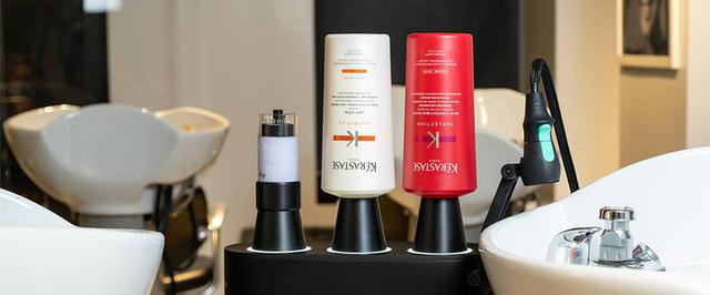 第一次喷水后,将护发产品注入水中,混合成泡沫,喷洒出来。因为有三个槽,所以每次可以选择混合添加两三种产品。更小的水滴状液体也会让护发产品更好地渗透到头发里。