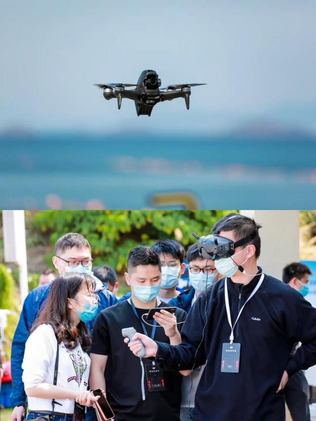 体验者戴上飞行眼镜,以第一人称视角操控DJI创新出品的沉浸式飞行无人机。