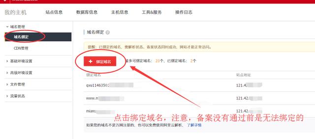 解析完成后,最后一步是在虚拟主机中或者虚拟主机的控制台界面中绑定域名。
