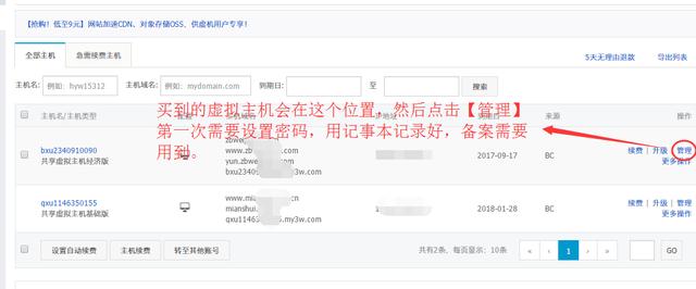 2.备案时需要使用购买的6元虚拟主机,需要使用主机控制台登录地址和登录密码。