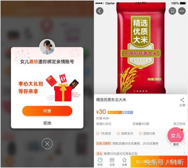 首先,儿童用户打开“我的淘宝”,选择“家庭账户”。选择“父亲”或“母亲”角色关系,或者邀请父母注册,或者直接绑定父母的淘宝账号。其次,家庭关系绑定完成后,父母手机淘宝会切换到专属页面,页面会有一个浮动的孩子用户头像。