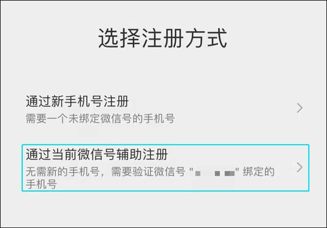点击“注册新账号”后,会出现两种注册账号的方式,其中“用当前微信号注册”的模式不需要新的手机号,非常方便。