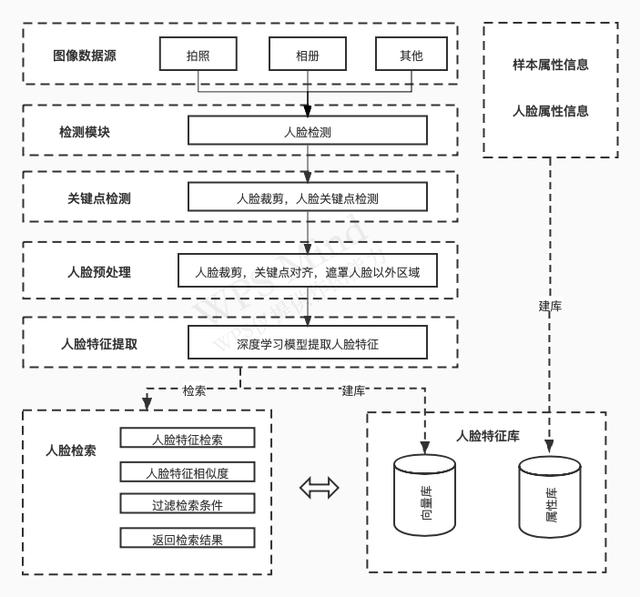 这类设备的操作过程其实可以统称为人脸识别系统。根据英国赫特福德郡大学和GBG Plc的研究人员发表的评论论文,它主要由人脸检测、人脸对齐、人脸表示和人脸匹配等模块组成。这里就不赘述了,智能人脸识别分析中的两个重要功能都是通过人脸检测和人脸识别来完成的。