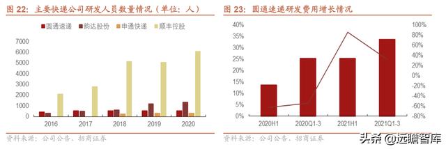 从R&D费用增速来看,2021年上半年,YTO快递投入R&D费用2531.28万元,同比增长85.83%,前三季度累计R&D费用3363.74万元,同比增长32.42%。