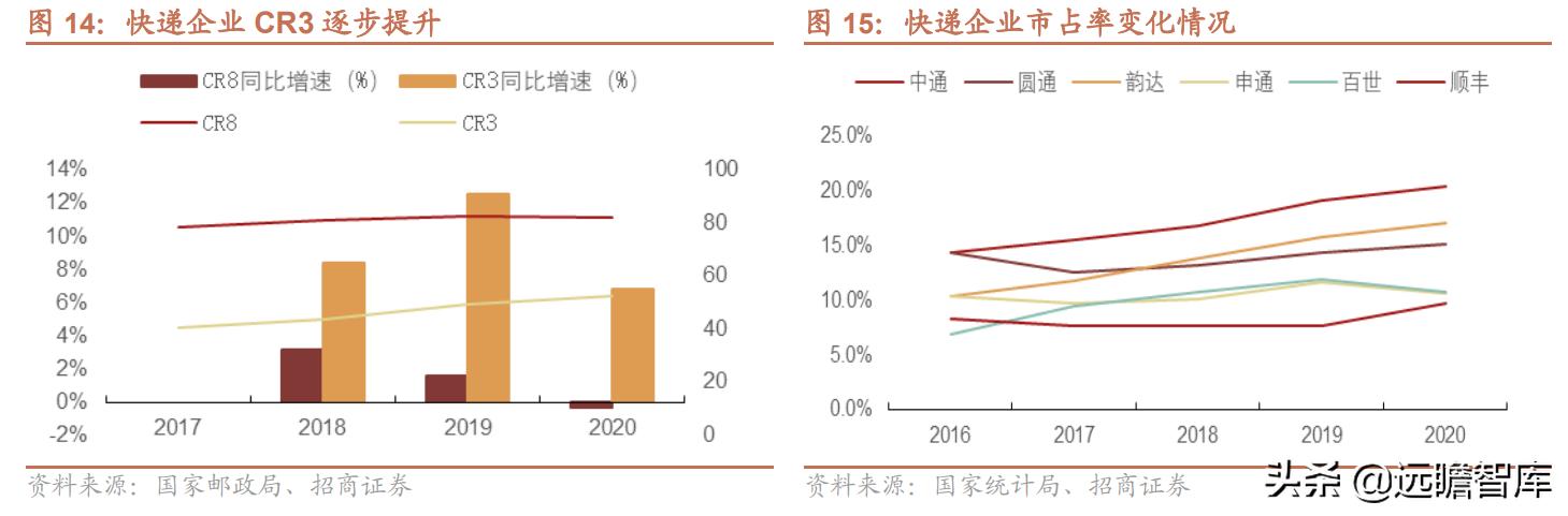 通过近期的数据观察,行业整体的单票收入实现了明显的复苏。在监管政策趋严期间,行业价格战已经得到阶段性缓解,行业新进入者已经无法通过低价的方式实现大规模的份额扩张。此时行业龙头企业有望扩大竞争优势,CR3集中度有望继续提升。