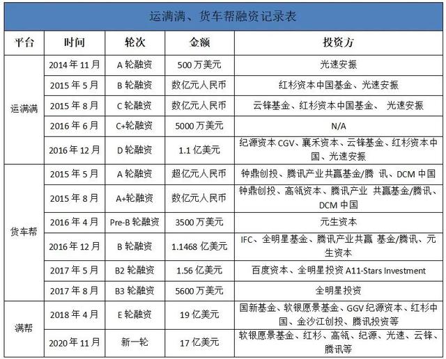 在满帮成立之前,云满帮和卡车帮都获得了大量投资。