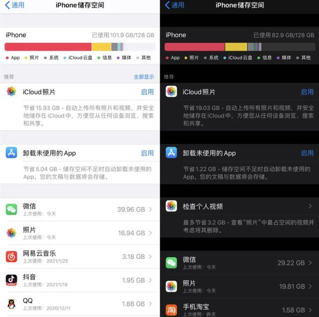 看了一下全家人的手机内存,发现微信或照片高居榜首,其次是视频类app,如Tik Tok、Aauto Quicker、爱奇艺、腾讯视频等对待这些内存“巨无霸”的办法就是一个一个破。