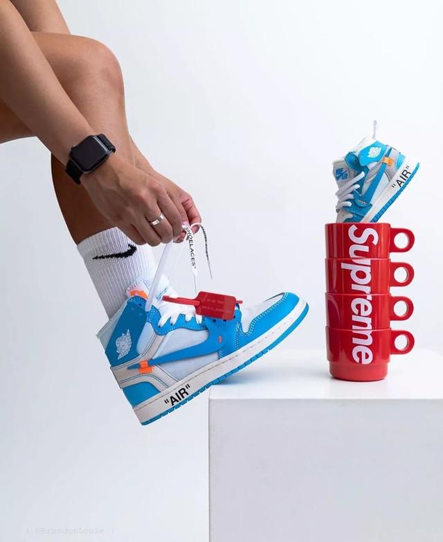 相对于芝加哥和欧洲OFF-WHITE x Air Jordan 1的3万元市场价,这双长期徘徊在1万元左右的北卡罗来纳蓝一直是“小哥哥”。