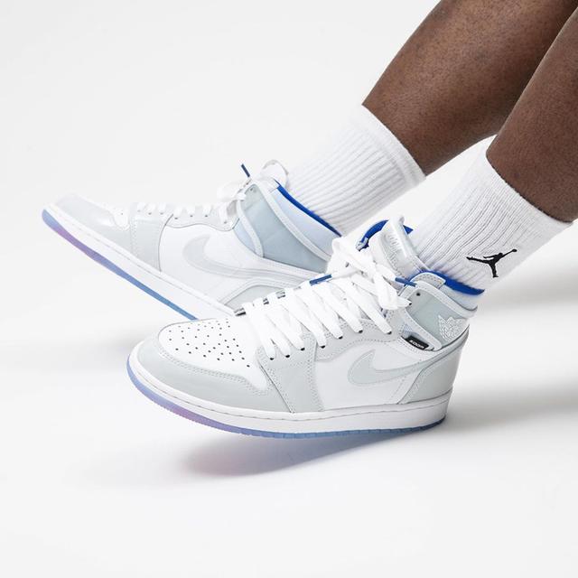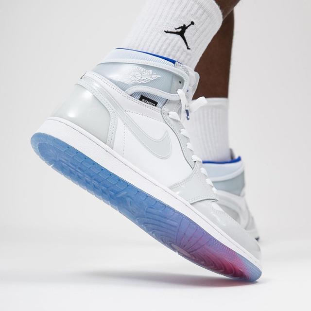配备Zoom气垫的Air Jordan 1 R2T版的第二种配色因鞋子的灰色主色调而被称为“小迪奥”,获得了很多关注。
