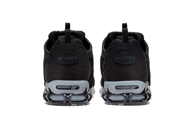 与此同时,最近大热的联名鞋stussy x Nike air zoom spiridon caged 2也曝光了米色和黑银色之外的配色。这次耐克把鞋子换成了全黑鞋面,深灰色中底,材质和米色一样,主要是亚麻配网眼布,预计近期推出。