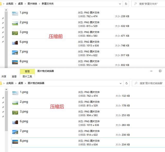 第五步:通过对比可以看出,压缩后的图片比压缩前小了很多,批量压缩成功。