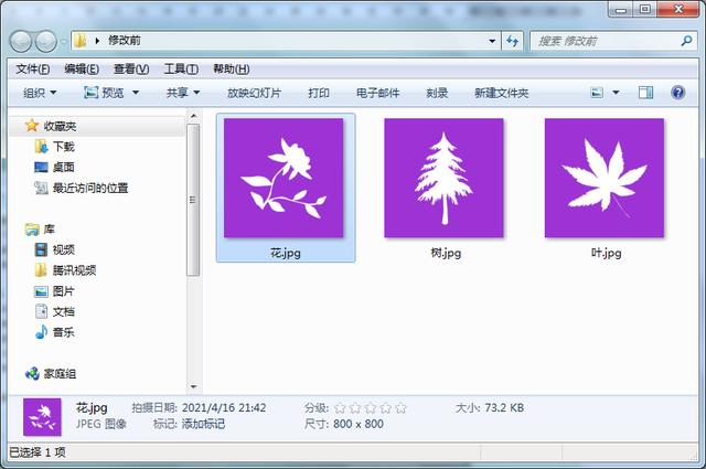 目前电脑桌面上有两个文件夹,修改前和修改后。“修改前”文件夹中存储有3张不同的图片,大小均为800*800像素;修改的文件夹是空文件夹。接下来我们要达到的效果是将“修改前”文件夹中的所有图片尺寸一次性更改为400 * 400像素,并全部存储在“修改后”文件夹中。