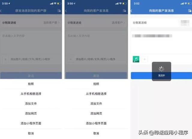 以前群发客户或客户群时,文件内容无法发送,导致群发的素材有限,音频、视频、文档都无法发送。此次更新后,群发可以发送更多的文件类型。