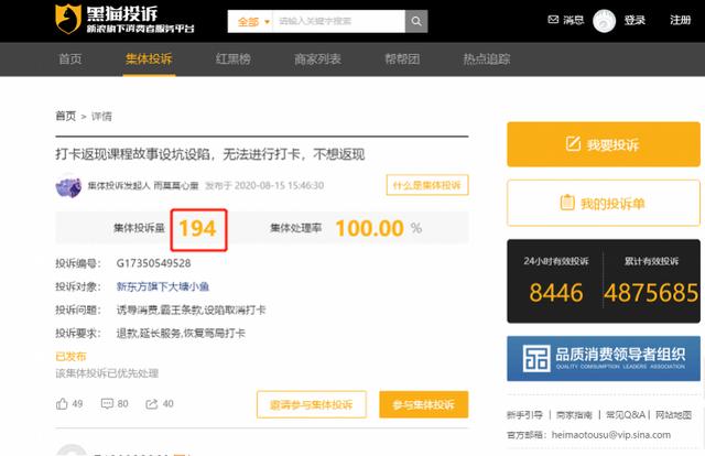 黑猫投诉官网,一个司法局打卡延时“确认”的集体投诉,达到194次。