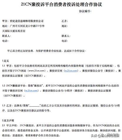 实际上,这是一份由21CN代表“聚诉”和合作企业签署的协议。
