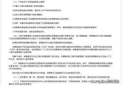 以12315为例。根据12315的投诉须知,消费者投诉必须有具体的投诉请求、事实(证据)和理由,要求工商行政主管部门在收到消费者投诉之日起七个工作日内处理并告知投诉人。同时,还规定了不予受理或终止受理的情形。涉及商品和服务质量的投诉,12315可以委托有资质的鉴定人进行鉴定,鉴定人应当告知鉴定意见。