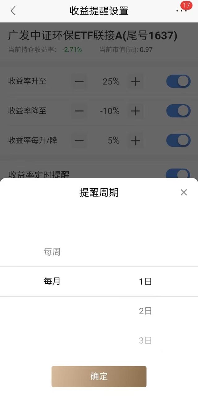 收入监控台的目的是监控收入的涨跌。每当收益上升到、下降到、甚至下降到用户设定的每升范围时,就会触发提醒功能,以短信的形式通知用户手机。除了收益率的通知,还可以根据周期(周/月)定期调整监控计划。有了这个功能集,你就完全不用盯着市场了。