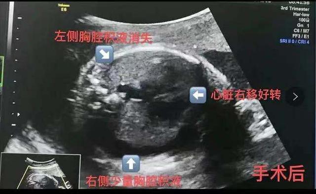 第二次手术还是顺利的。刘子健教授通过手术将引流管放入胎儿的左腋下,胎儿的胸腔积液越来越少。现在,胎儿七个月了,陈女士正在数着日子,等着宝宝出生。