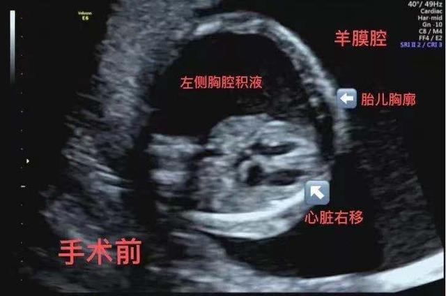 在武汉产检时,陈女士的医生告诉她,“情况不太乐观,胎儿左胸有大量胸水,左肺发育不良,心脏明显向右压。”如果不治疗,这个胎儿很快就会因为心脏和肺部受到严重压力而出现全身水肿和胎儿在子宫内死亡。