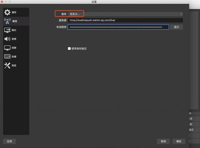 在设置中,输入我们在第一步中刚刚在小程序的MP端获得的推送流地址。