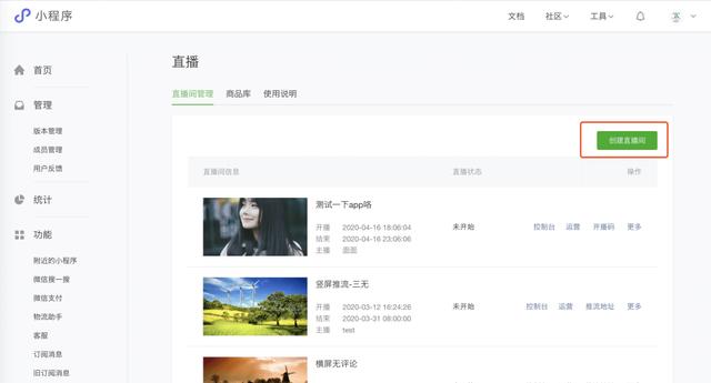 以上准备完毕,就可以回到MP小程序后台,直播——控制台。