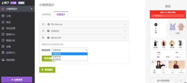 2.功能满足相应场景的要求。要做一个电商小程序,那么小程序商城的后台要能让商家具备订单管理、在线支付、添加商品、设置品类、添加各种营销工具(优惠券、群、分销、推广弹窗)、开通直播等功能。,以满足商家的网上业务需求。同样,做一个电商小程序,你得具备吃饭、支付、开餐厅、外卖等一些功能。
