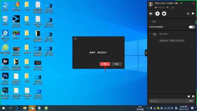 退出直播时,点击直播控制面板右上角的“结束直播”按钮,在出现的提示页面点击“确定”。