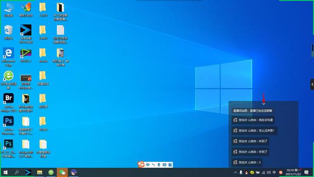 可以点击右下消息界面顶部的倒三角隐藏界面(也可以点击右下消息界面底部的正三角在直播中显示界面)。