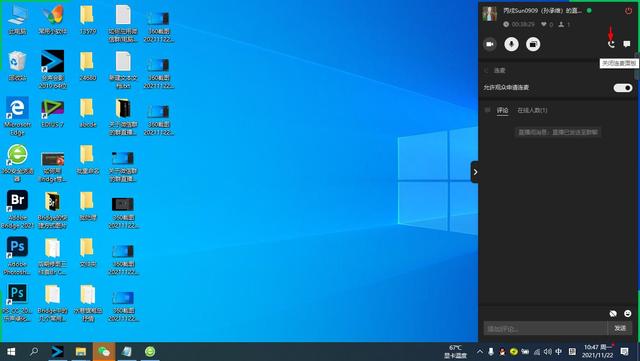 在直播控制面板的左上角设置“关闭摄像头”和“选择共享屏幕”。