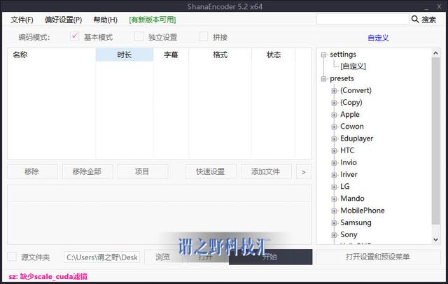 ShanaEncoder是韩国人基于FFmpeg开发的音视频编码程序。它是最强的视频抑制软件。支持CPU多线程和GPU加速,转换速度快,清晰度高,功能超强!为了操作方便,哔哩哔哩指定了冲压工具。