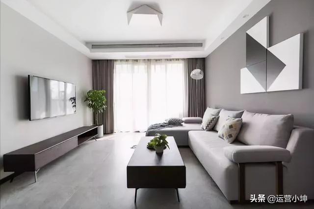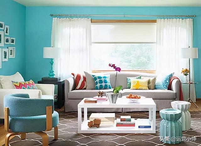 2.墙是深色的,家具是浅色的,窗帘要比墙轻一号。