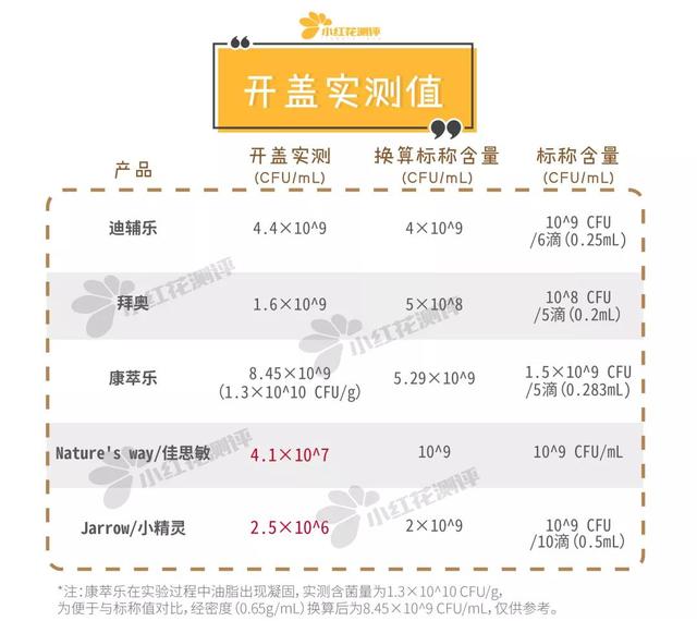 鳌拜的活菌数实测值远高于标称值,应该就是这个原因。经过询问客服和查看买家秀,小红花的评价发现