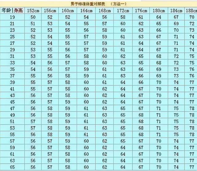 男152-188cm标准体重对照表,自测,其实你的身材很标准