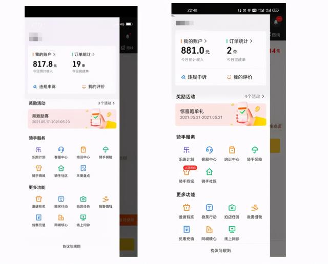 李康口中的自由,不仅是指睡觉和醒来的时间自然支配自由,更重要的是可以分配时间去接私活。目前,李康除了美团的外卖业务,还有一份酒店服务员的兼职私活,一个月也能给他带来两三千元的收入。这还不包括一些零散的跑腿和奖励。仔细算下来,李康每个月可以有近两万元的稳定总收入。