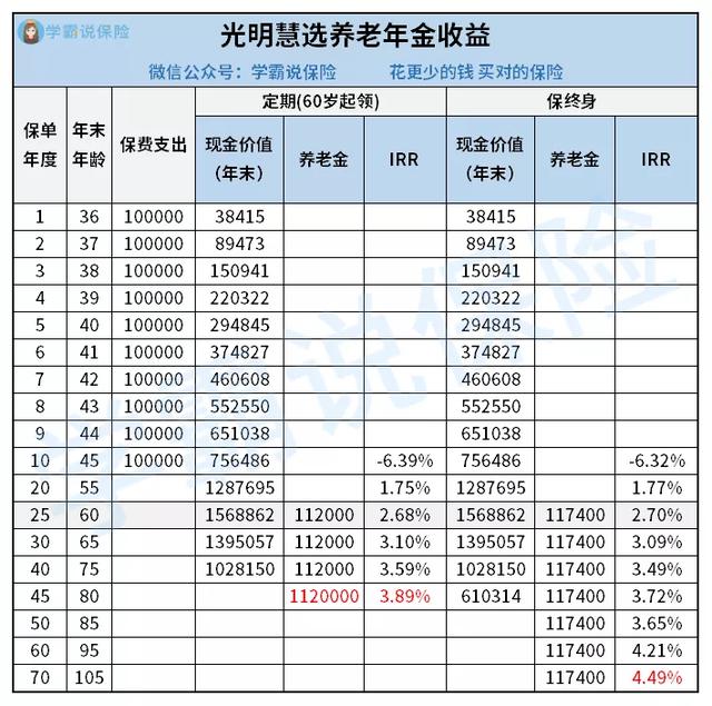 在寿命结束时,内部收益率已飙升至近4.5%,达到顶级水平。在此基础上,还可以加入保底利率3%(市场最高)的万能账户进行二次增值。