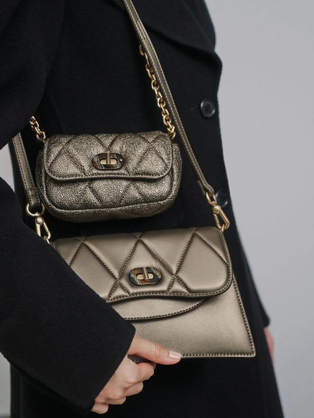 大菱形图案的一半和梯形的包身,让包包更加时尚优雅。