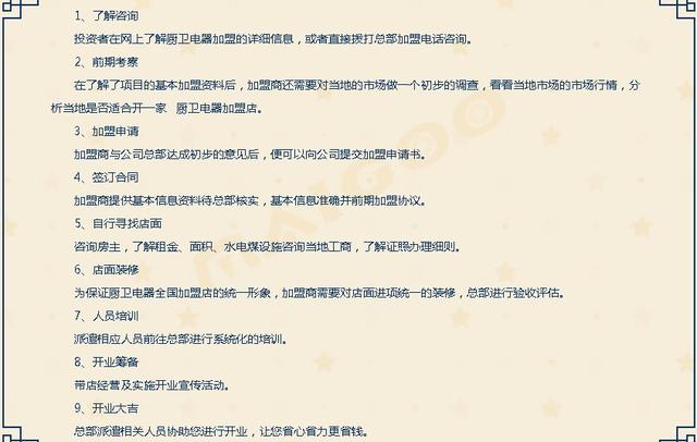 2。看厂家在全国有多少加盟商。要看联盟盟主的加盟商数量和经营业绩。一般来说,加盟商的数量可以看出这个项目是否真的有市场前景。更容易搞清楚它的真实盈利情况,更容易判断厨电是否应该加入这个项目。