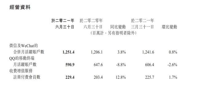 以及微信QQ用户数。图片:腾讯2021年上半年财报截图。