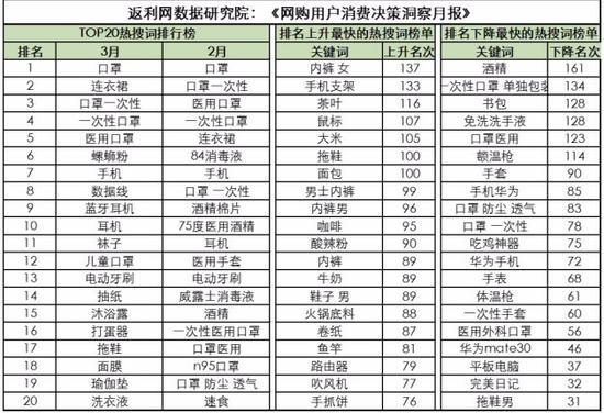 在刚刚过去的3月份,随着国内疫情的稍微趋缓,基本上大家都陆续复工,防疫物资也陆续恢复生产和正常供应。消费者对防疫物资的需求逐渐从“刚需囤货”转变为“正常使用需求,用完再买”。从返利公布的搜索行为大数据也可以看出。com了解到,在3月份,只有与“口罩”相关的搜索频率仍然相对较高,但更多的搜索已经逐渐回归到家居日常生活,如衣服、日用品、零食等。