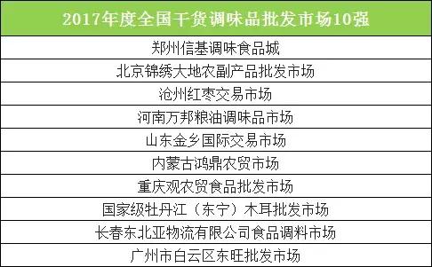 根据交易量,评选发布了以下榜单:2018年全国农产品批发市场百强、2018年全国农产品批发市场50强、2018年全国蔬菜批发市场50强、2018年全国水果批发市场20强、2018年全国水产品批发市场30强、2018年全国肉禽蛋批发市场20强、2018年全国粮油批发市场20强、 2018年全国茶叶批发市场10强、2018年全国花卉批发市场10强、2017年全国干调味品批发市场10强。 具体列表如下(点击图片看大图看清楚):