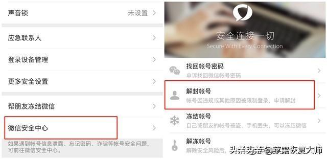 打开微信安全中心,可以在解封账号查看解封步骤。不过申请解封一般需要一段时间。