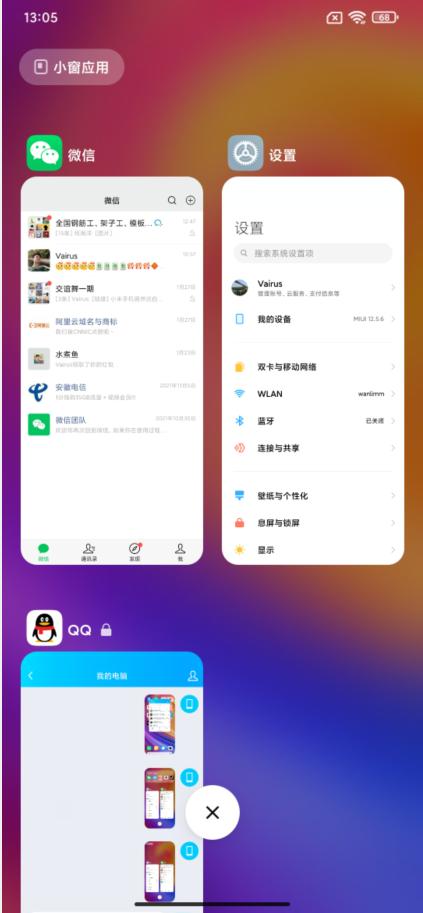 二、通过小窗应用按钮,开启小窗口。从手机屏幕底部向上滑动,打开后台应用列表界面(如下图)。
