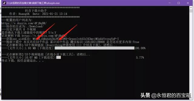 第三步:再次双击douyin.exe启动程序,即可批量下载。