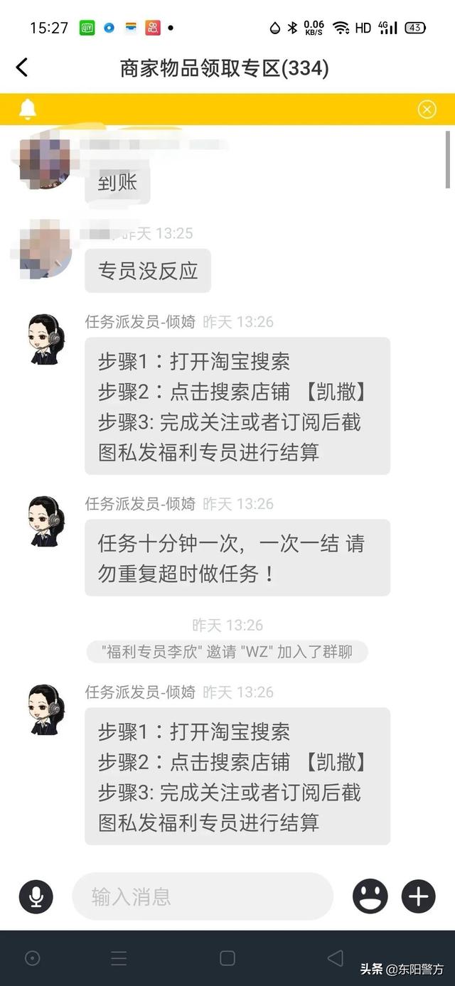 接下来,小组中一个昵称为“任务分派者-转储者”的人向张玲发送了一个任务,操作与第一个相似。在此期间,她还被“福利专员”拉进了另一个群“商货征集特别小组