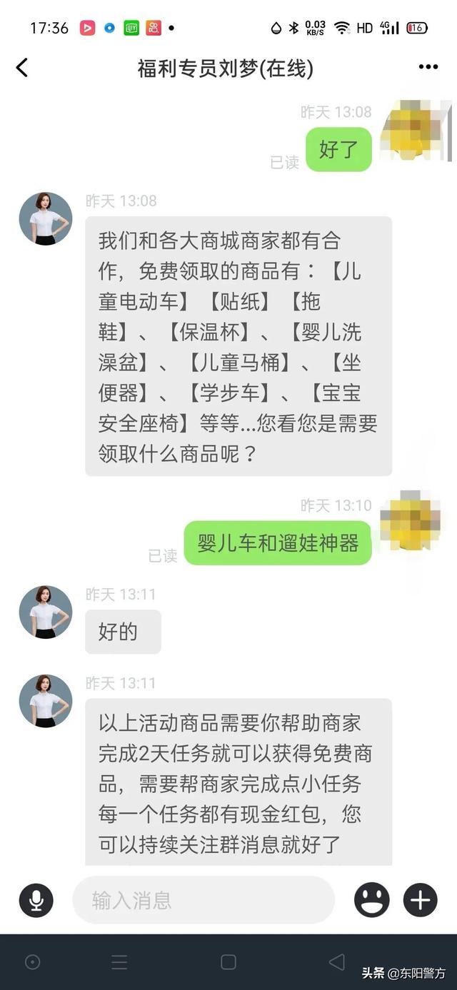 在张玲选择了婴儿车、婴儿行走神器等两款产品后,“福利专员刘猛”表示,如果想免费获得产品,需要帮助商家完成两天的任务。当然,这项任务不是白做的。每个任务都有装满现金的红包。两天任务完成后,他可以找她要快递单号。