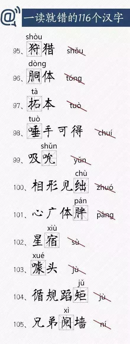 今天,边肖带来了116个一读就错的汉字。老师,家长,同学们,快来挑战一下你们能正确阅读多少!